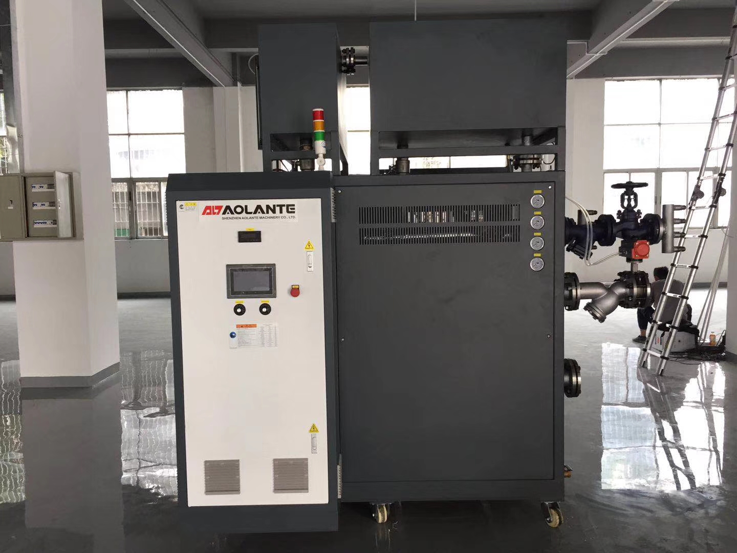 碳纖維復(fù)合材料行業(yè)控溫速冷速熱模溫機(jī)在河北客戶(hù)生產(chǎn)防彈衣、防彈頭盔使用現(xiàn)場(chǎng)。